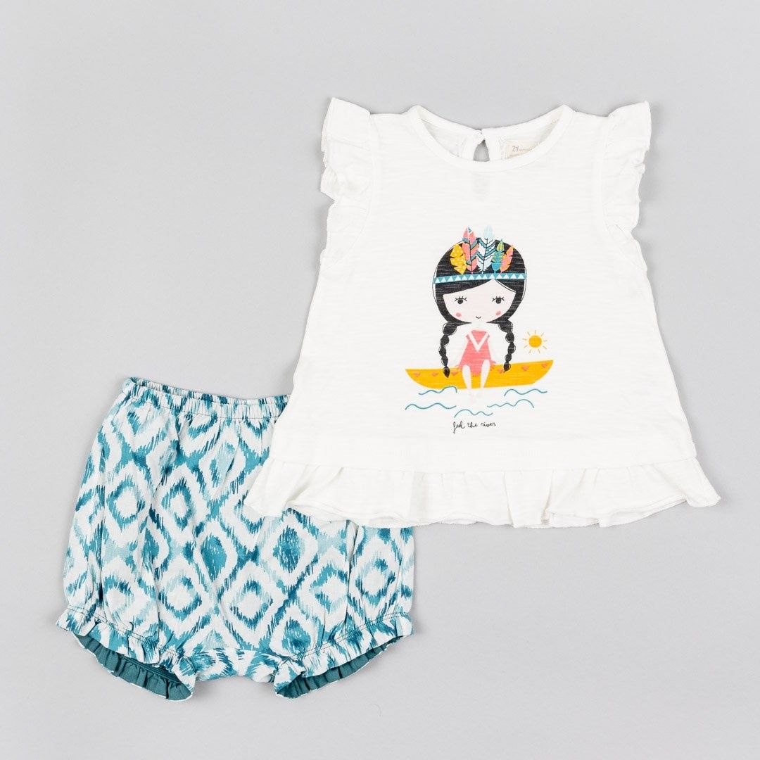 Bílé tričko s indiánkou + kraťasy